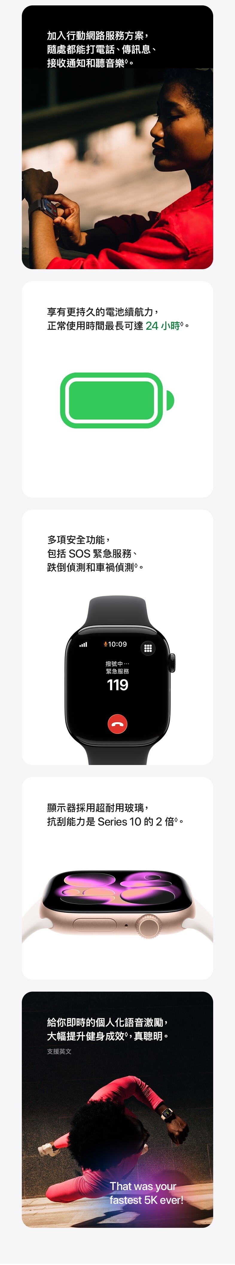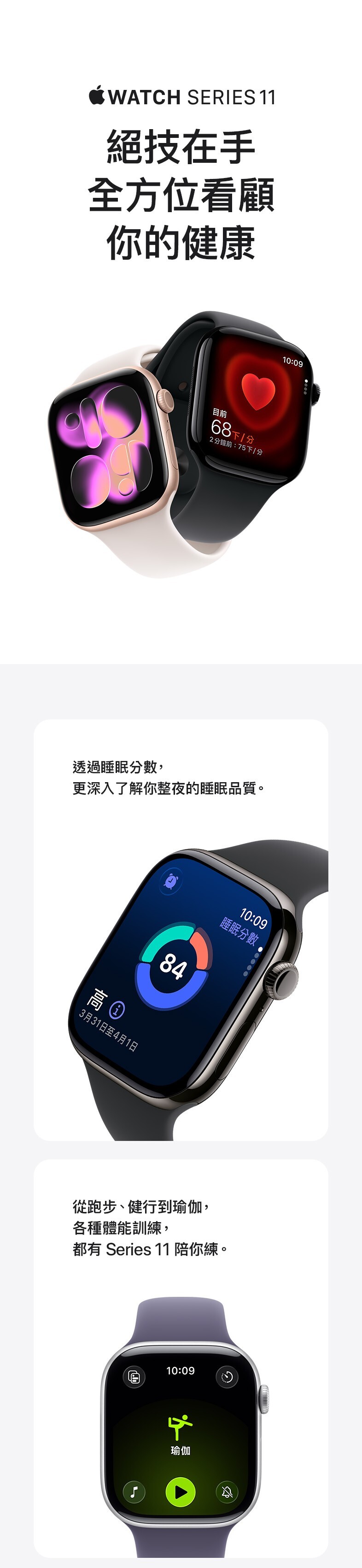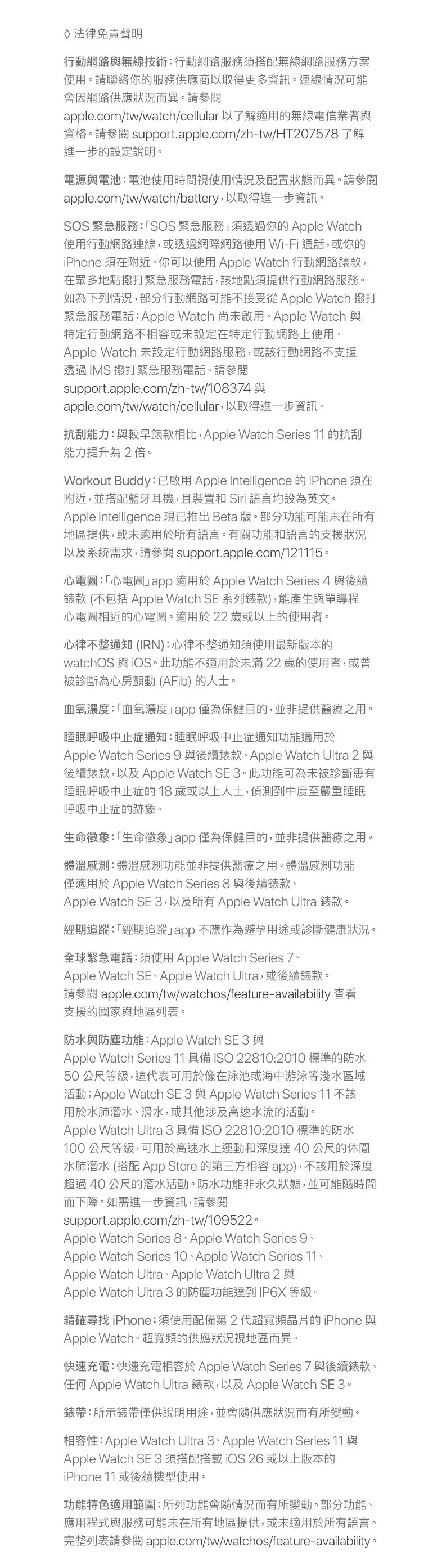 Apple Watch Series 11 鋁金屬錶殼 搭載全新 S10 晶片與第二代超寬頻晶片,效能更強大並支援「精確尋找」功能。配備隨顯 Retina LTPO3 顯示器,最高亮度 2,000 nits,採強化 Ion-X 玻璃,抗刮力提升兩倍。全新太空灰色鋁金屬錶殼,輕盈耐用並具 50 公尺防水與 IP6X 防塵,日常與戶外皆安心。續航最長 24 小時,低耗電模式可延長至 38 小時,並支援快充。健康功能全面升級,除心率、血氧、心電圖外,更加入高血壓偵測與睡眠評分,搭配生命徵象 App 監測身心狀況。結合 Workout Buddy 提供運動語音激勵,讓健身更有效率。