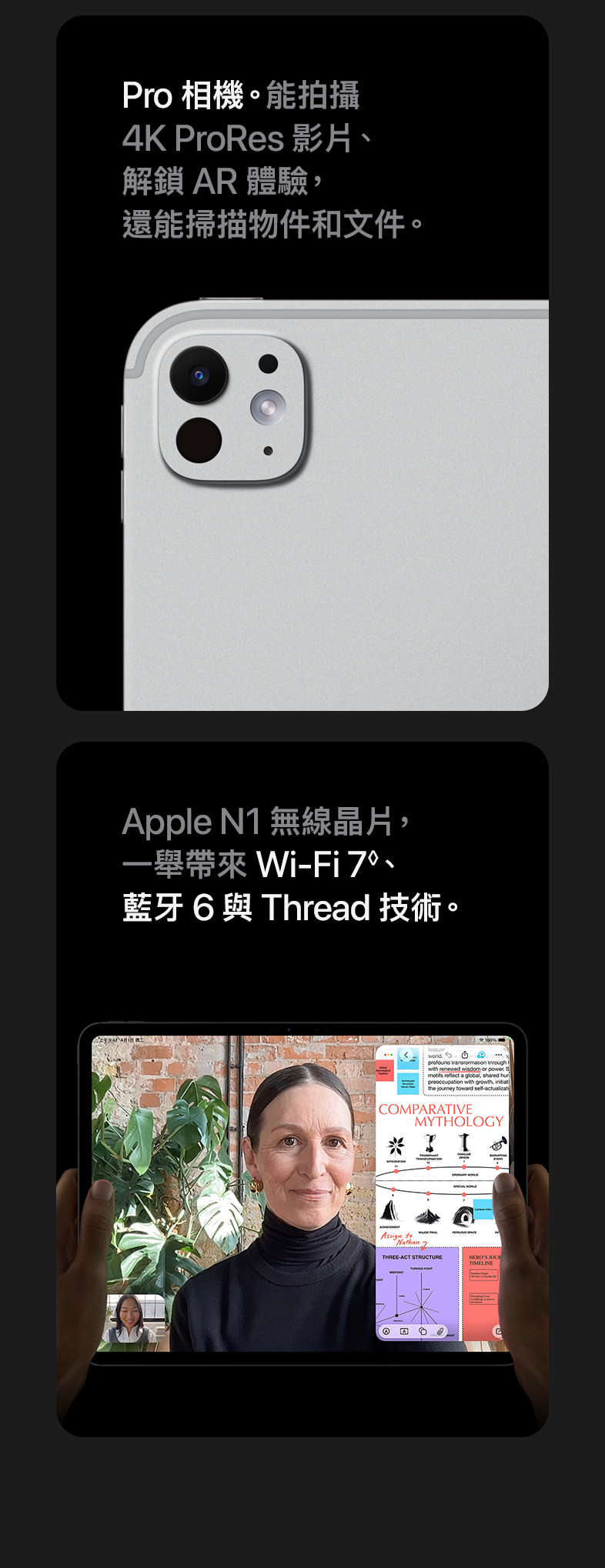iPad Pro,配備 M5 晶片,飆出驚人的效能;創新突破的 Ultra Retina XDR 顯示器以兩種尺寸呈現;還有疾速 5G,無論在哪,都能發揮令人讚歎的實力表現。
