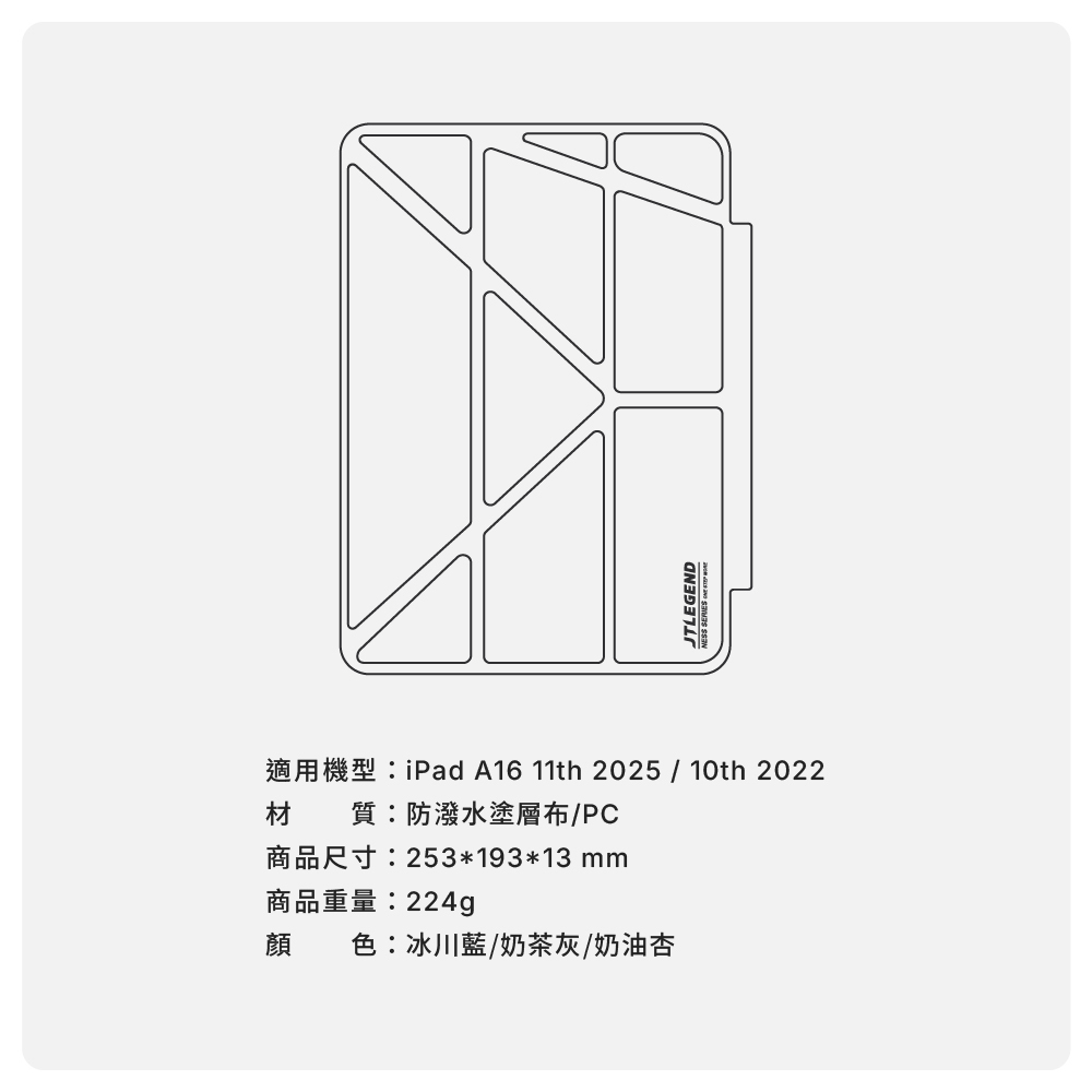 JTLEGEND iPad 11th,10th 10.9'' 2025,2022 Ness 相機快取多角度折疊布紋皮套 無筆槽款